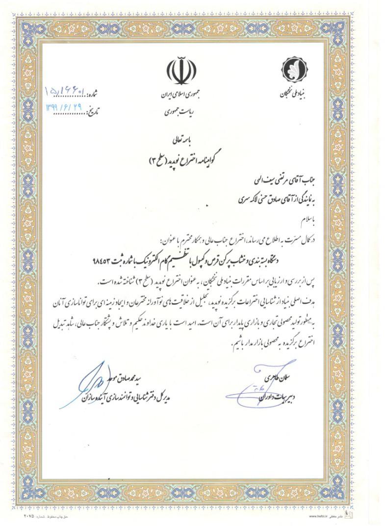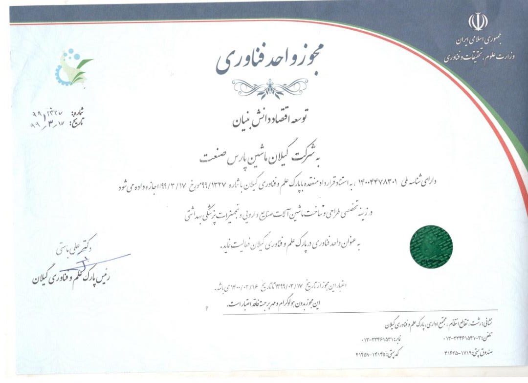 این مجموعه با ثبت چندین اختراع، اخذ مجوزهای رسمی تولید، استاندارد CE اروپا، گواهی ISO 9001 و حضور مستمر در نمایشگاه‌های داخلی و بین‌المللی، همواره کیفیت، نوآوری و رضایت مشتریان را به‌عنوان اصول محوری فعالیت خود دنبال کرده است.