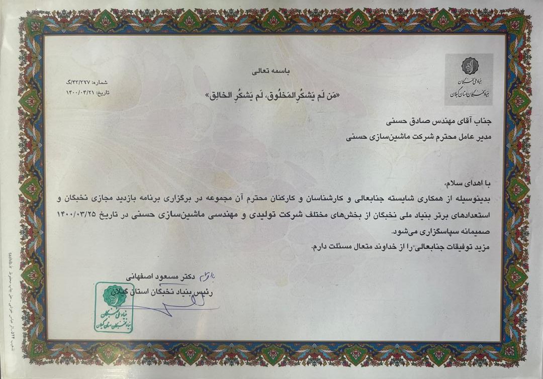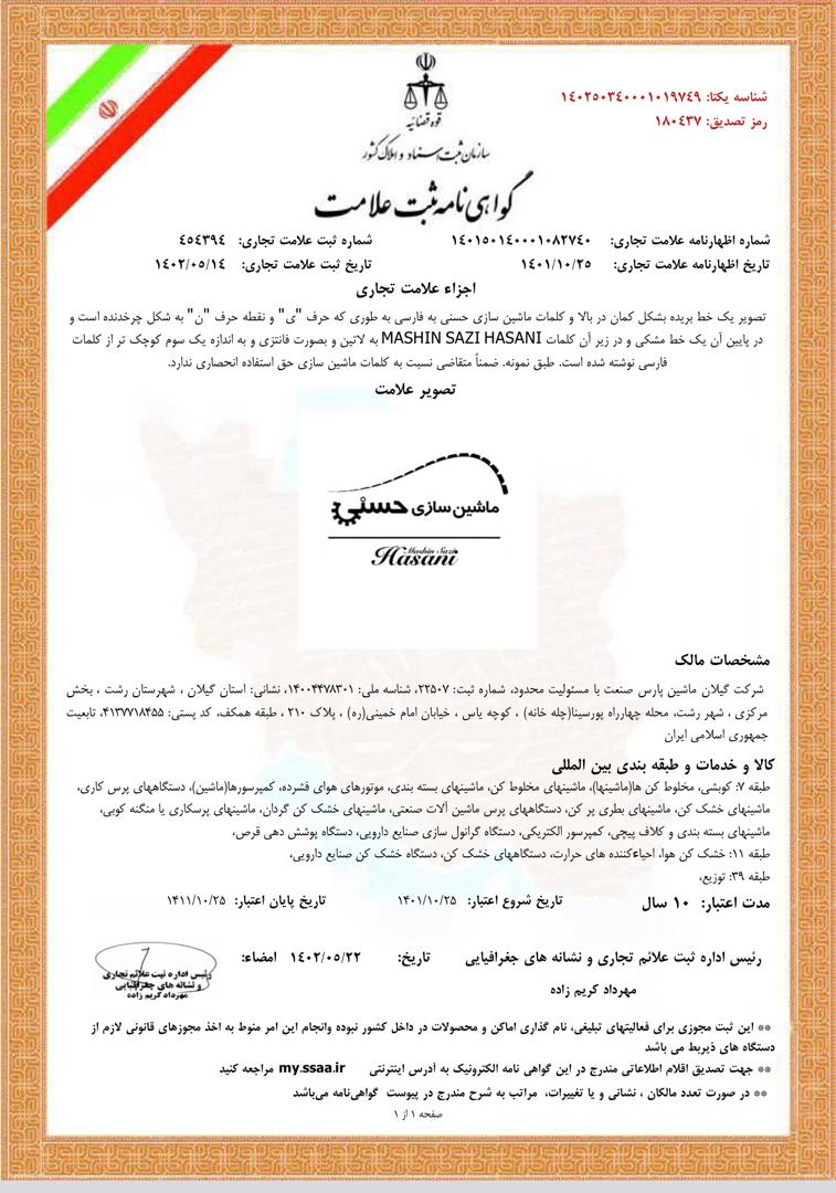آدرس: لاهیجان – شهرک صنعتی – ماشین‌سازی حسنی